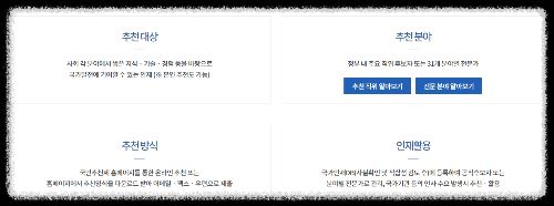 우리 주변의 숨어 있는 인재가 국가 발전의 핵심 인물이 될 수 있도록, 여러분의 적극적인 추천을 기다립니다.